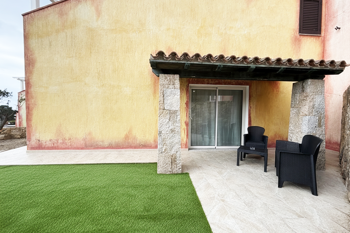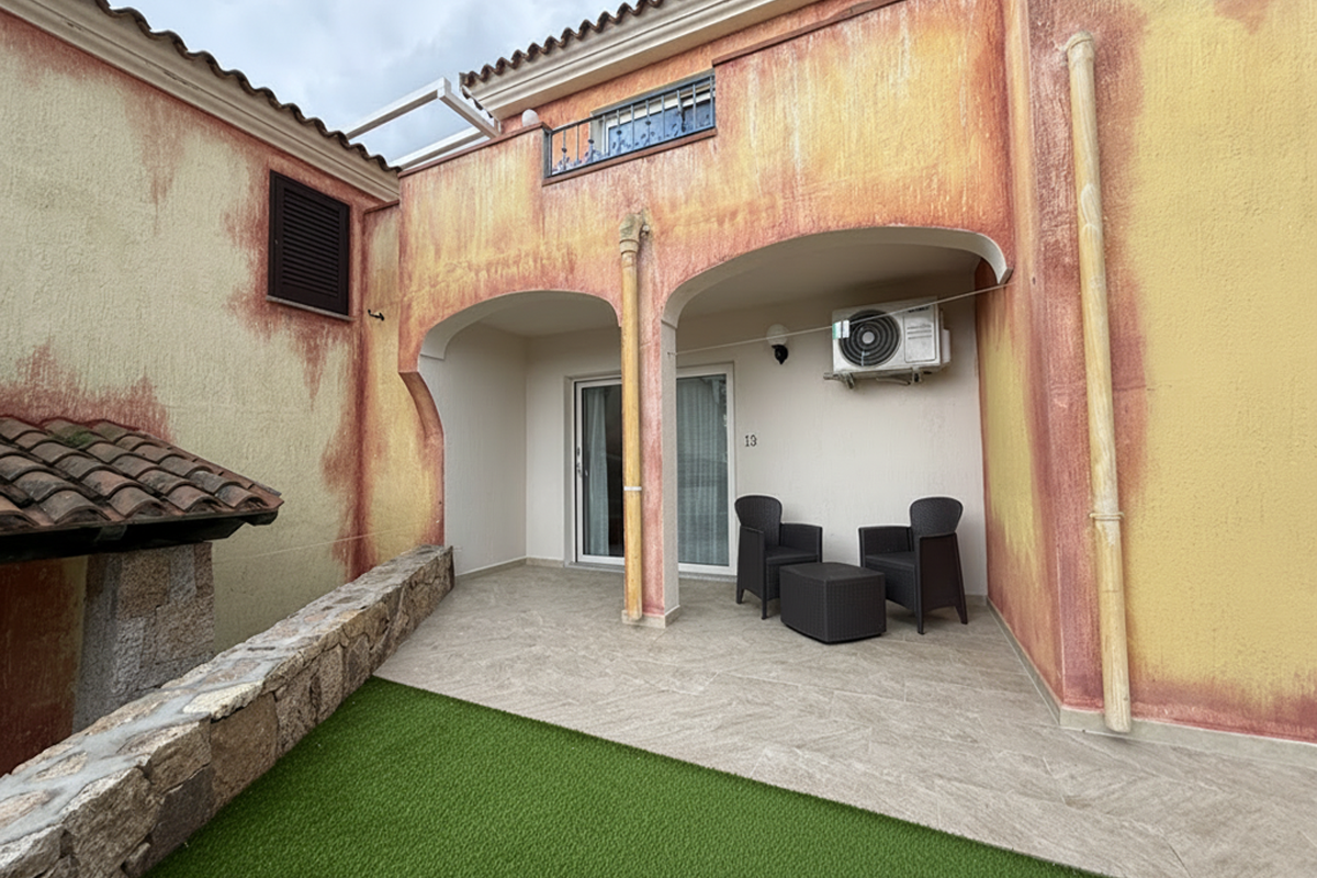Tutte le camere includono uno spazio esterno: al piano terra una veranda attrezzata di tavolino e sedie con accesso a un giardino conidviso ma riservato, mentre al piano superiore un terrazzino privato attrezzato di tavolino e sedie con vista sull'area circostante.