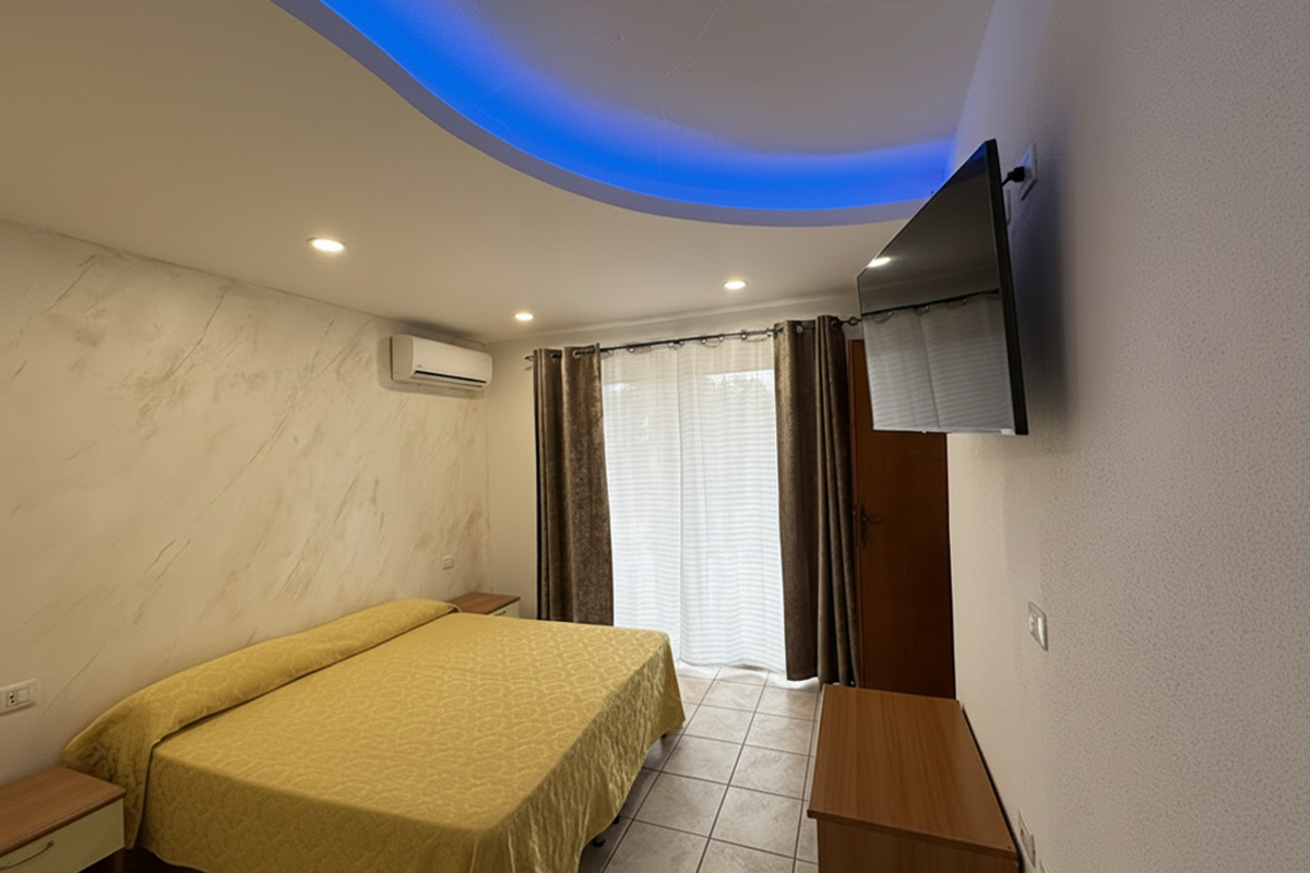 Le camere Superior sono sistemazioni ideali per due persone, con possibilità di ospitare fino a tre persone. La parete e il suggestivo controsoffitto con illuminazione LED creano un’atmosfera contemporanea e accogliente. Ogni camera dispone di letto matrimoniale ( con eventuale terzo letto ) climatizzazione, TV 43", mini frigo a disposizione degli ospiti e bagno privato.